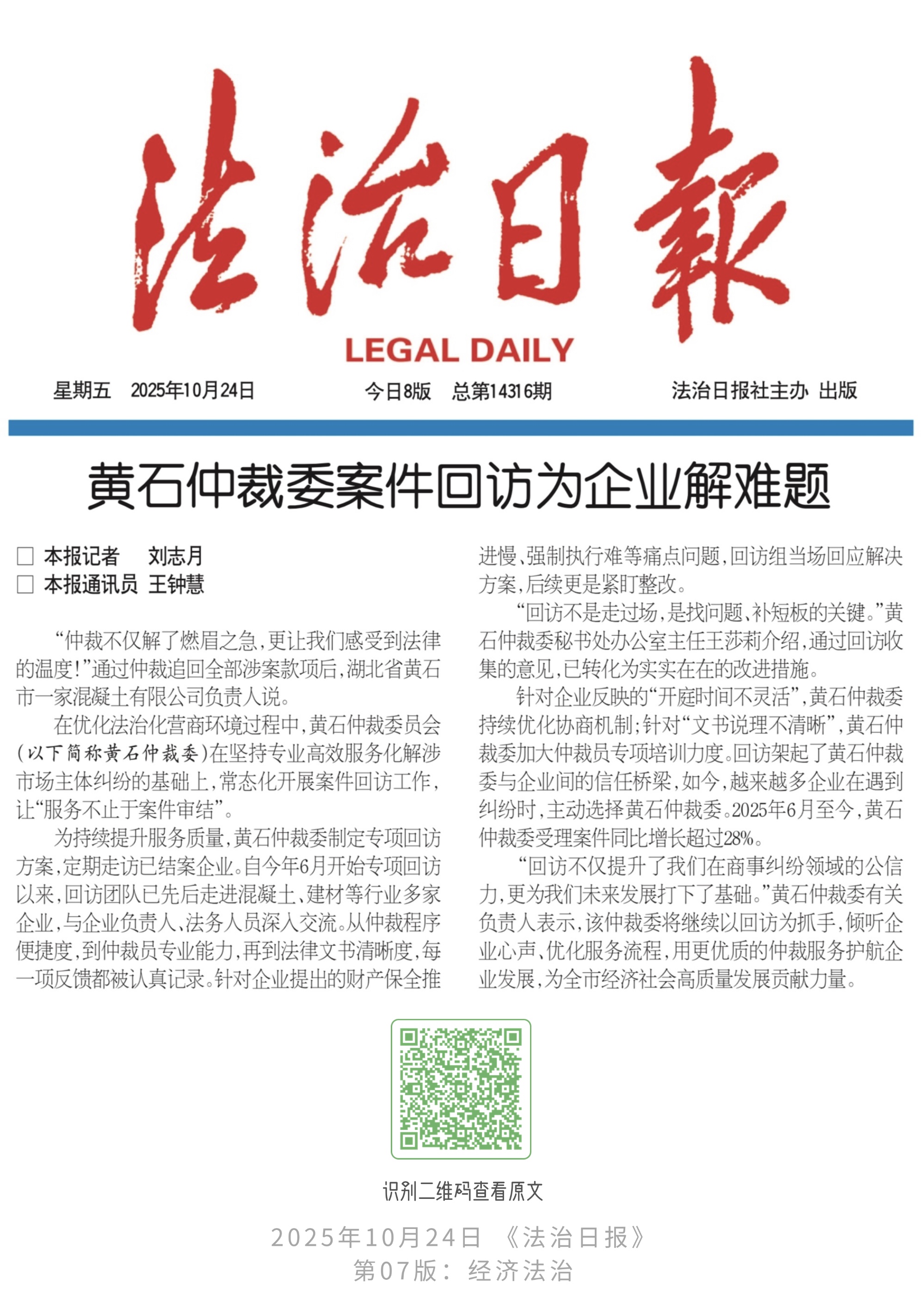 “回访不仅提升了我们在商事纠纷领域的公信力,更为我们未来发展打下了基础。”黄石仲裁委有关负责人表示,该仲裁委将继续以回访为抓手,倾听企业心声、优化服务流程,用更优质的仲裁服务护航企业发展,为全市经济社会高质量发展贡献力量。