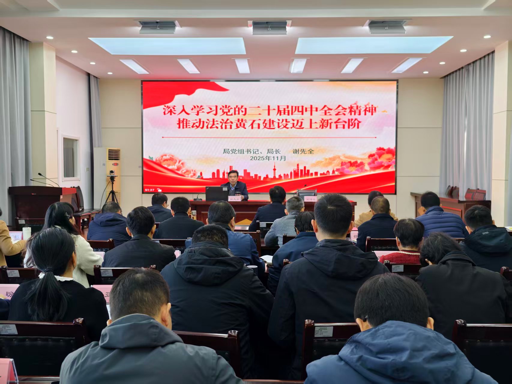 报告会上,谢先全围绕党的二十届四中全会的重大意义、核心要义以及“十五五”时期全面依法治国的战略部署进行了系统宣讲和深入解读。他结合司法行政工作实际,强调要深刻把握全会对法治建设提出的新要求、新任务,特别是《中共中央关于制定国民经济和社会发展第十五个五年规划的建议》中关于“社会主义法治国家建设达到更高水平”的战略定位、核心原则、关键任务和重点领域法治保障要求。报告还全面回顾了“十四五”时期法治黄石建设取得的显著成效。