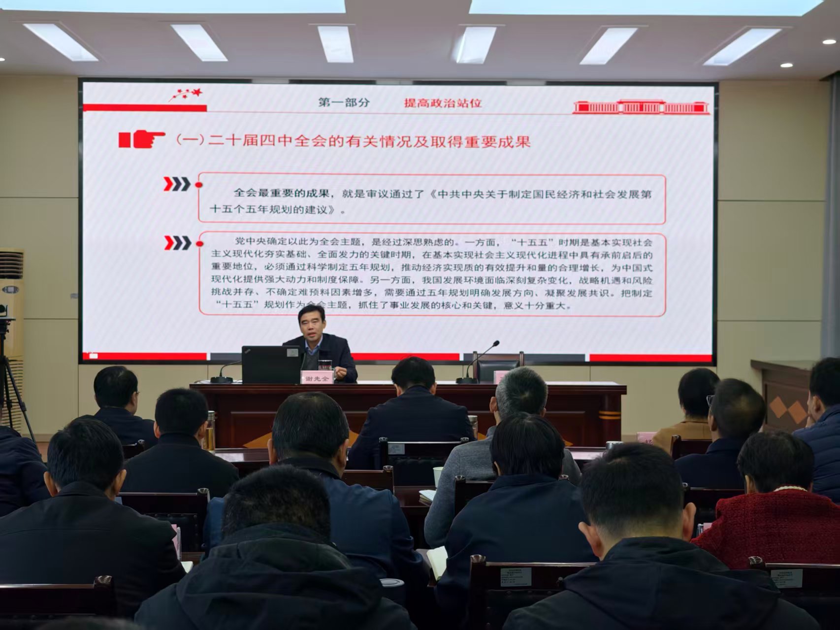 11月20日,市司法局通过全市司法行政系统政治轮训班开展学习贯彻党的二十届四中全会精神专题宣讲报告会。市委宣讲团成员、市司法局党组书记、局长谢先全作专题宣讲报告,引导全市司法行政干警深入学习领会党的二十届四中全会精神,统一思想行动,凝聚奋进力量。