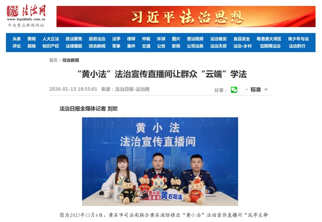 “‘黄小法’法治宣传直播间将继续优化平台功能、丰富内容供给,进一步完善‘需求收集—主题定制—互动反馈’的闭环机制,让每周四的‘云端相约’成为群众学法、懂法、用法的重要渠道,持续推动法治宣传走深走实。”黄石市司法局相关负责人说。