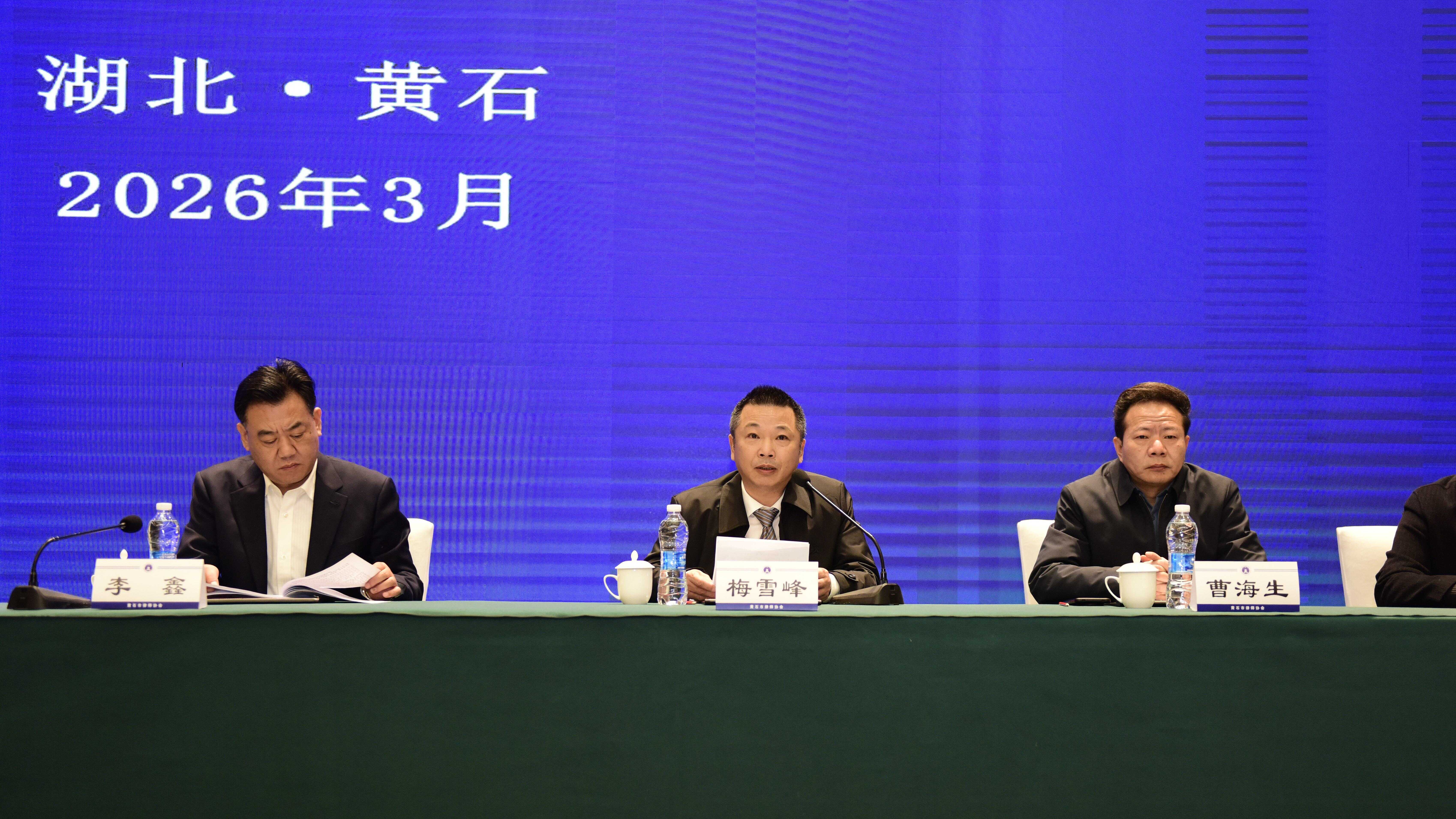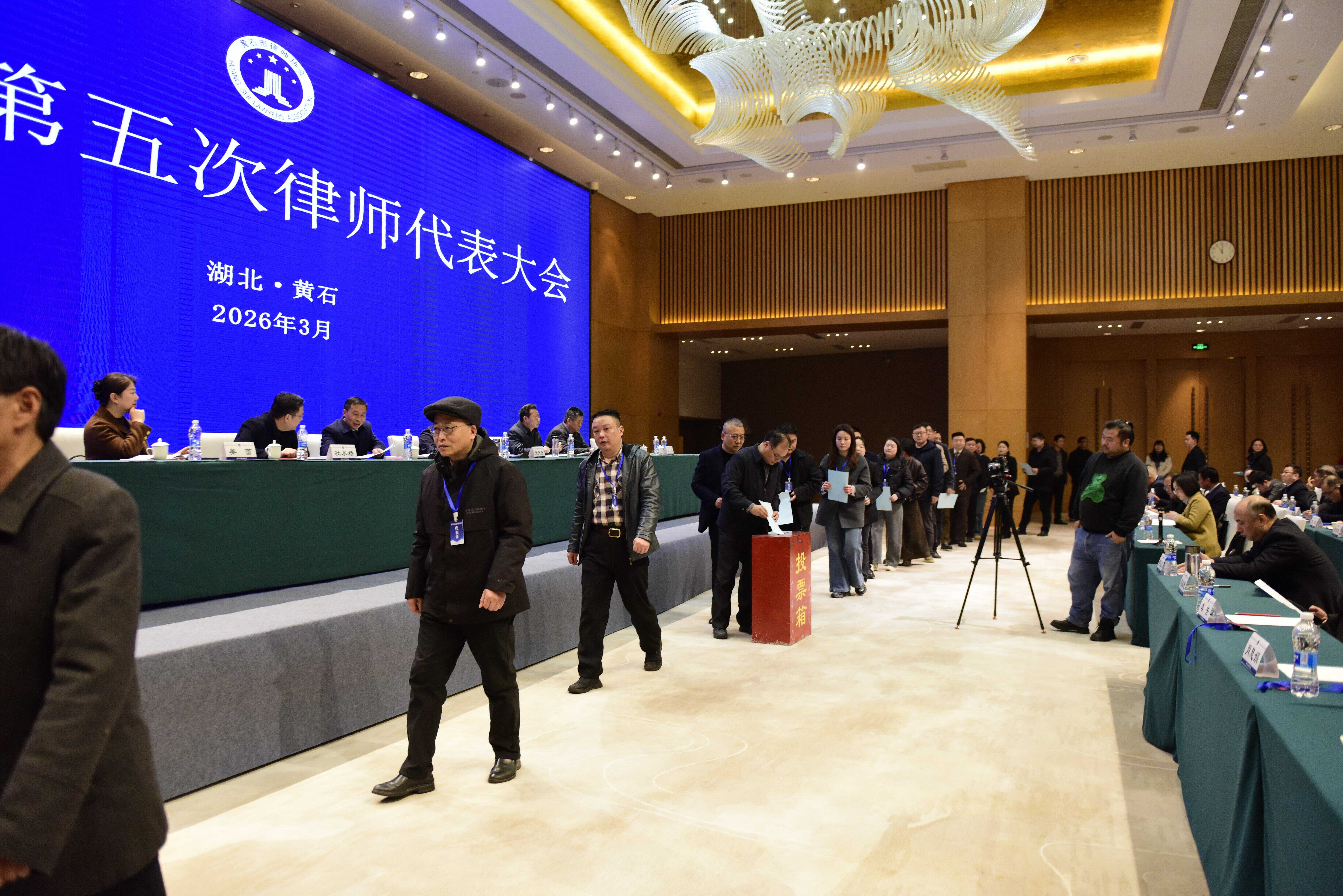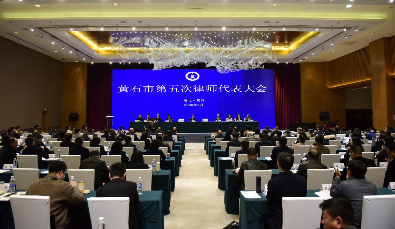 2026年3月21日,黄石市第五次律师代表大会在闻泰花园酒店召开。省司法厅律师工作处处长李鑫,省律师协会会长梅雪峰,省律师行业党委委员、党办主任黄伟,市政府副市长、市公安局局长黄志勇,市委政法委副书记宁海,市中级人民法院副院长王晓丰,市检察院副检察长秦国文,市国家安全局副局长郑磊,市民政局副局长方洪刚,市司法局部分班子成员及各县(市、区)司法局有关领导出席会议。副市长、市公安局局长黄志勇、省律师协会会长梅雪峰分别作了讲话,市司法局党组书记、局长、市律师行业党委书记谢先全主持会议。