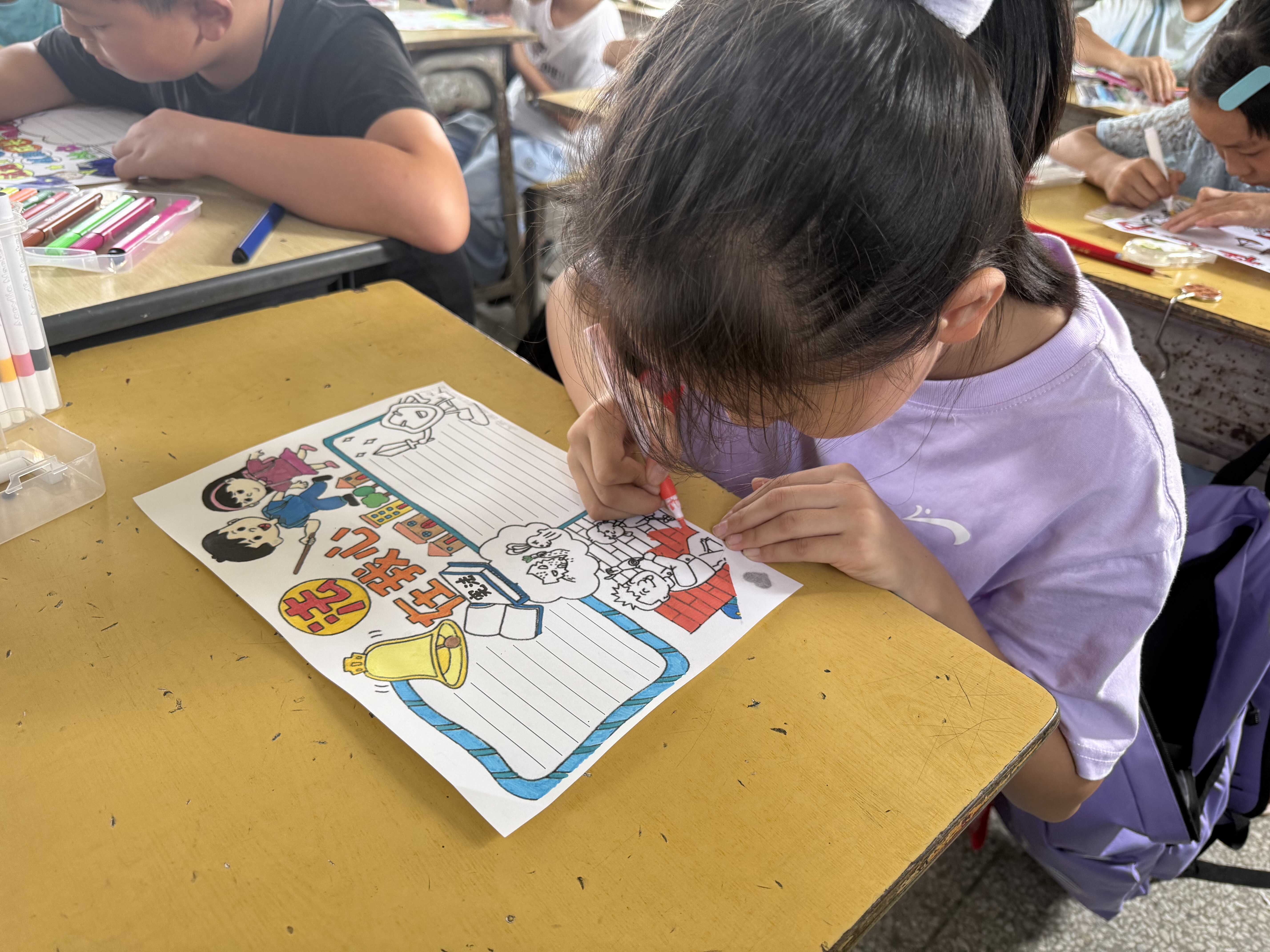 在掌握了基础宪法知识后,活动进入了手抄报环节,同学们迫不及待地拿起彩笔,将一个个法治元素,如庄严的国徽、鲜艳的五星红旗、象征公平正义的天平、代表法律尊严的“法”字等元素进行描绘。一张张普普通通的卡纸,在同学们的巧手下,变成了图文并茂、色彩斑斓的宪法宣传“微型报纸”。整个过程,同学们全神贯注,在绘画与书写中,再次加深了对宪法知识的理解与记忆。