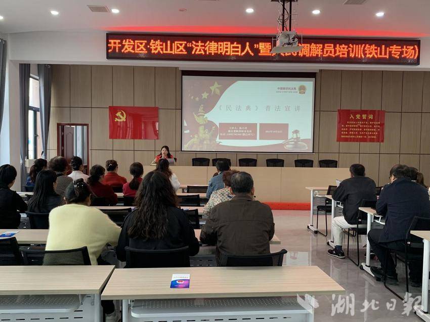 为进一步提升基层“法律明白人”、人民调解员的专业素养与实务能力,10月24日,开发区·铁山区新时代文明实践中心、区司法局联合区法律服务志愿服务队在铁山街道建设路社区开展“法律明白人”暨人民调解员培训。