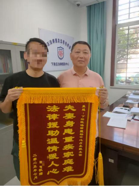 2025年7月,王某将印有“法律援助温情暖人心”的锦旗送到下陆区法援中心