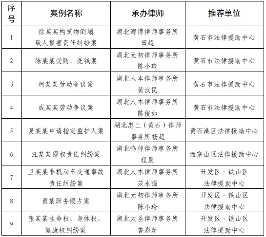 近年来,黄石市司法局高度重视优秀案例对办理法律援助案件的示范引领作用,将其作为提升法律援助服务质量的重要抓手,积极组织全市法律援助机构申报优秀案例。截至目前,全市已有13篇典型案例入选司法部法律援助案例库,在全省历届百优案例评选中长期保持领先水平。在今后工作中,全市司法行政系统将继续坚守以人民为中心的发展理念,充分发挥公共法律服务职能作用,以更精准的服务、更务实的举措,把法律援助这件民生实事办细、办好、办实,奋力书写人民群众满意的民生答卷。