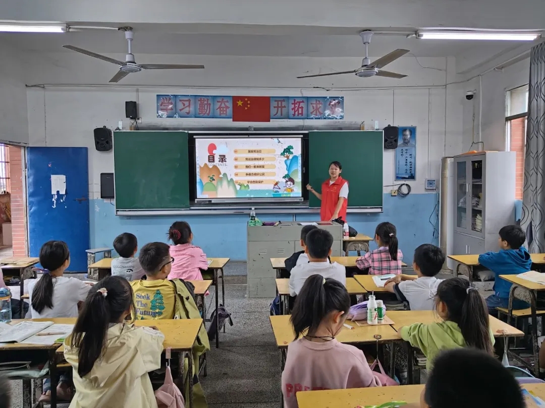 白沙镇土库小学、梁公铺小学、七峰学校、珠林初级小学则开展“与法为伴 ‘典’亮人生”普法教育活动。普法专员聚焦学生生活场景,设计“模拟维权小课堂”情景剧,让学生化身“被P图维权者”“劣质文具消费者”,并发起“法治小卫士”承诺签名,指导学生运用民法典化解“借物不还”“网络充值纠纷”等实际问题,将法律知识转化为行动自觉。