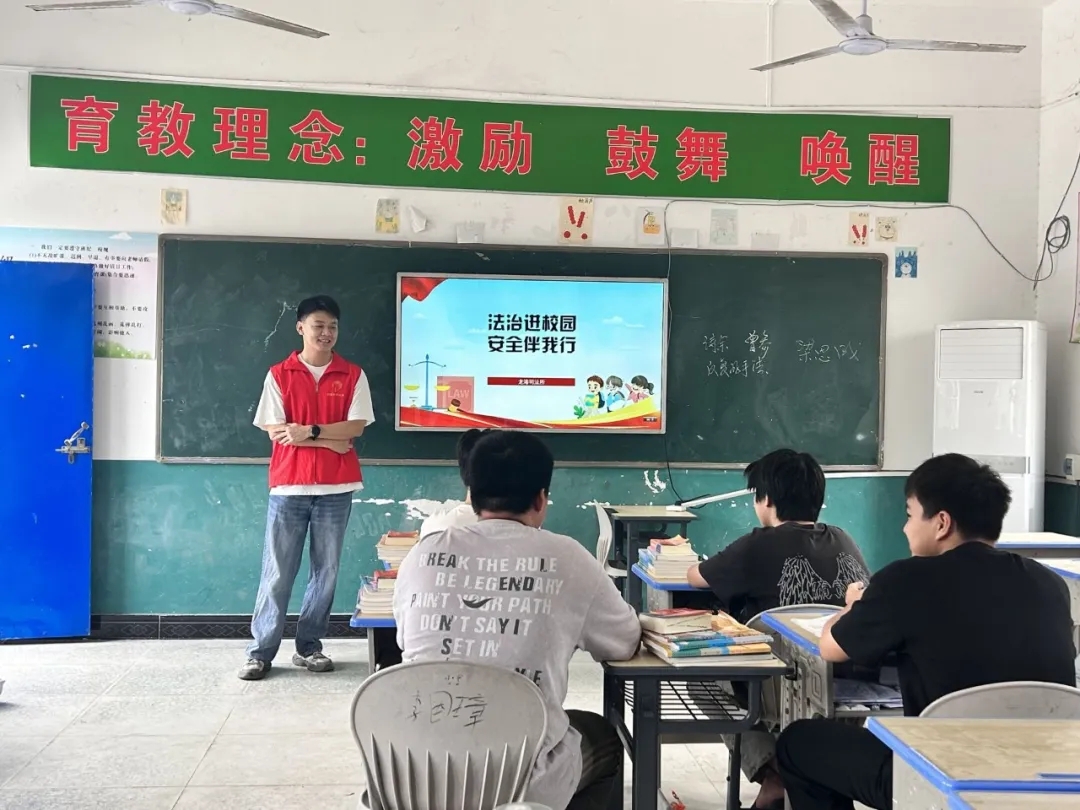 在洋港中学,法治副校长吴风谱以案例为引导,为学生们带来一节生动的法治课,课程紧扣三个维度:一是阐释法治教育意义,引导学生珍惜学法机会;二是结合身边典型犯罪案例,剖析不良习惯、反诈盲区等风险,敲响“法在身旁”的警钟;三是通过有奖问答互动,寓教于乐,强化学法记忆。整堂课以情景式教学为纽带,激发了学生们的学法热情。