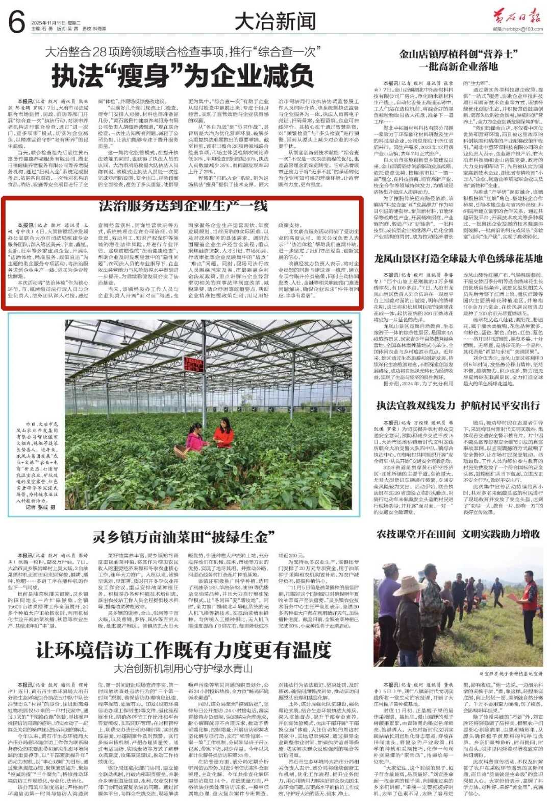 此次联合服务活动得到了受访企业的高度认可。美天公司负责人表示:“‘法治体检’帮助我们查漏补缺,进一步坚定了我们守法经营、创新发展的信心。”