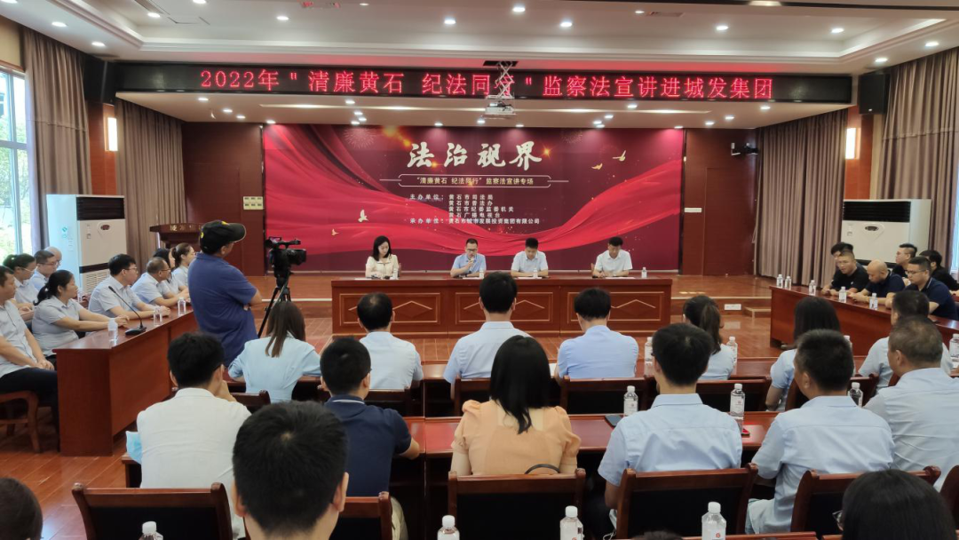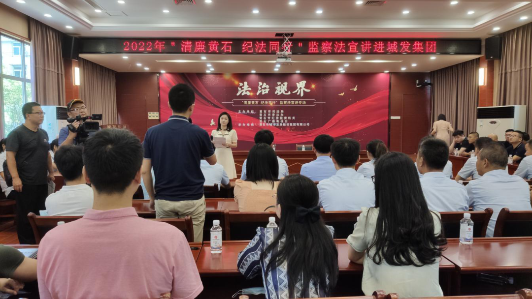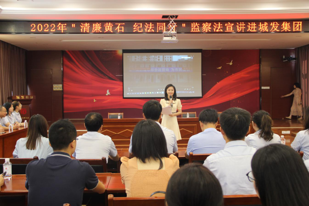 2022年8月26日上午,市司法局、市普法办联合市纪委监委机关、黄石广播电视台一同走进城发集团,举行了一场生动的《监察法》主题宣讲活动,集团各级公司纪检监察干部及工程、招采、财务等重要岗位的近百名工作人员参加了宣讲。