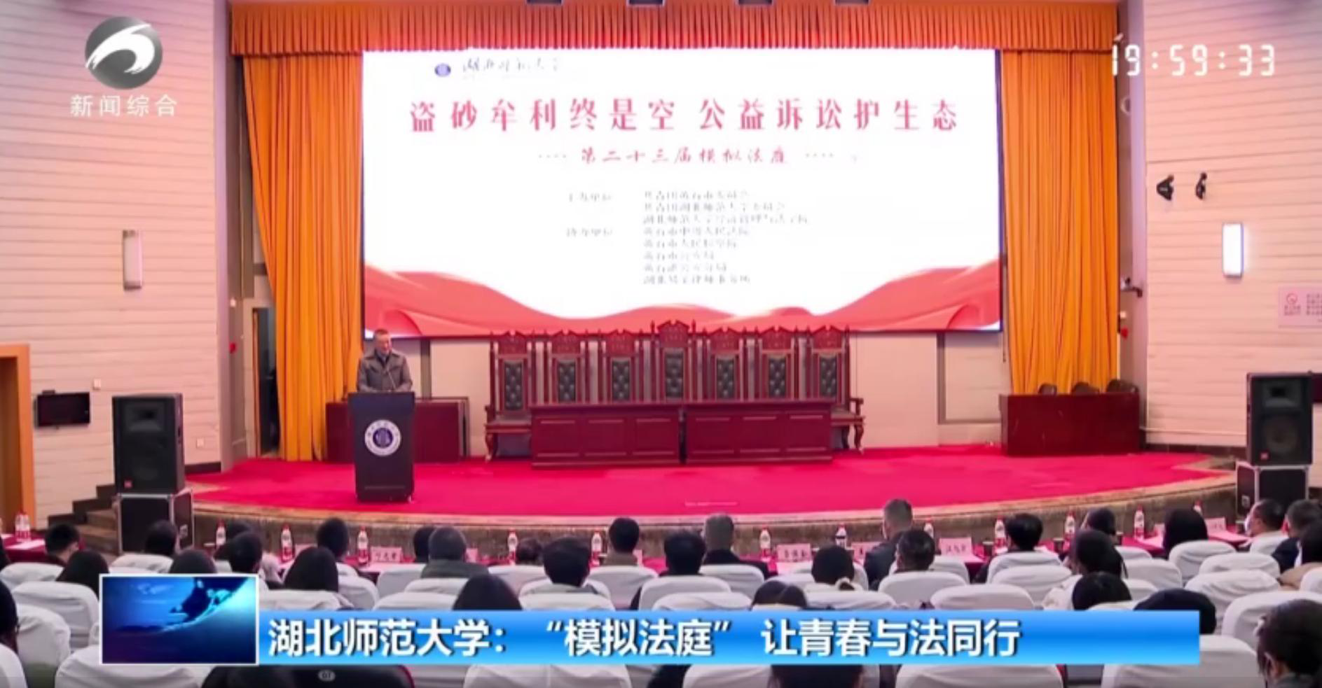 湖北师范大学举行以“盗砂牟利终是空,公益诉讼护生态”为主题的第23届模拟法庭活动。大学生们采用模拟情景剧的形式,还原庭审现场,弘扬法治精神,该活动信息被“学习强国”APP转载。