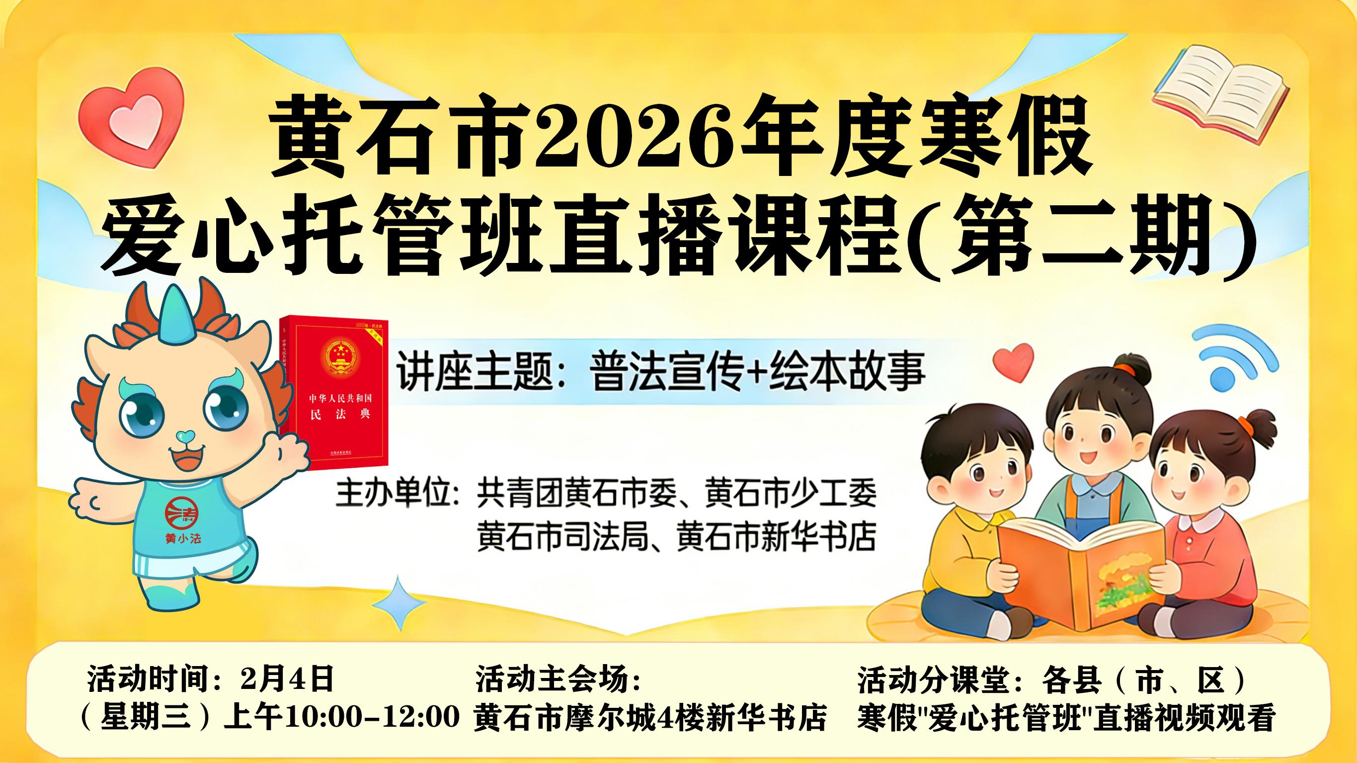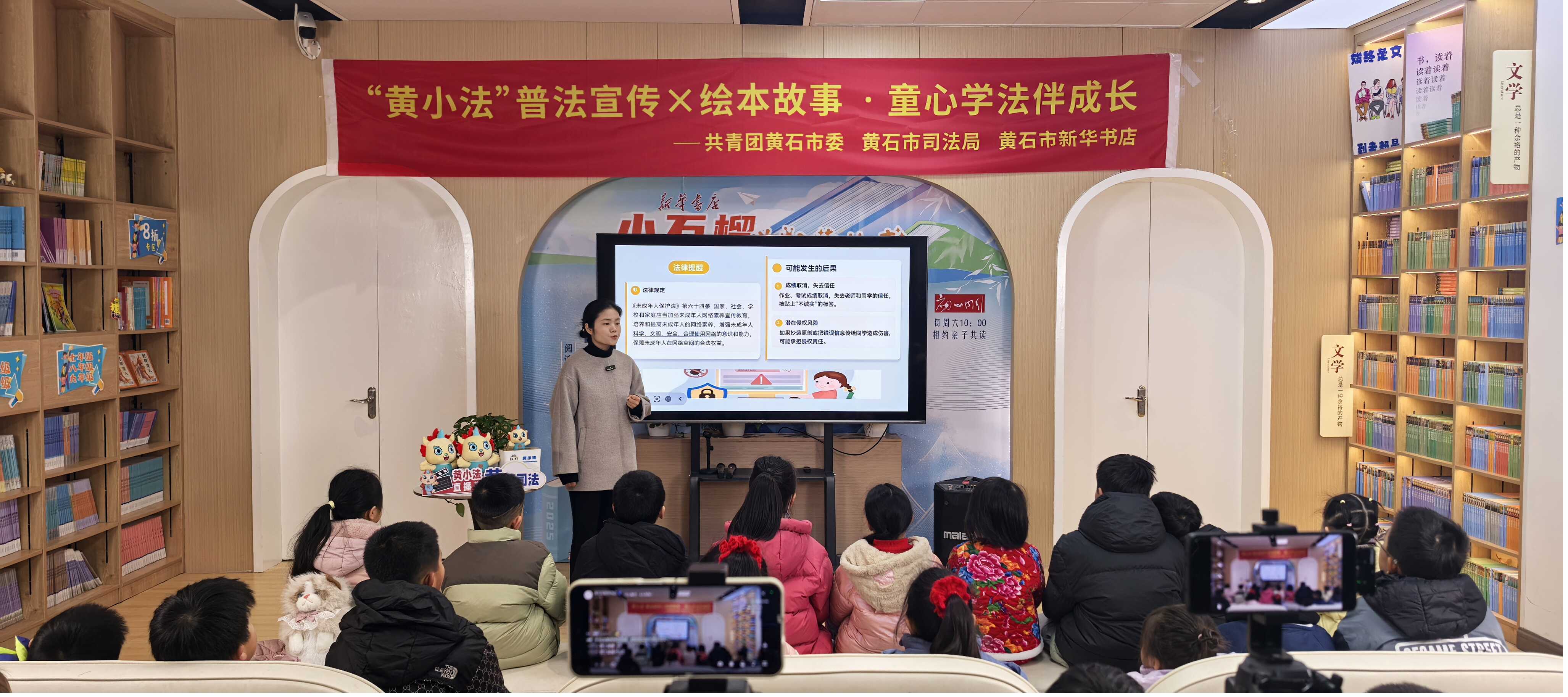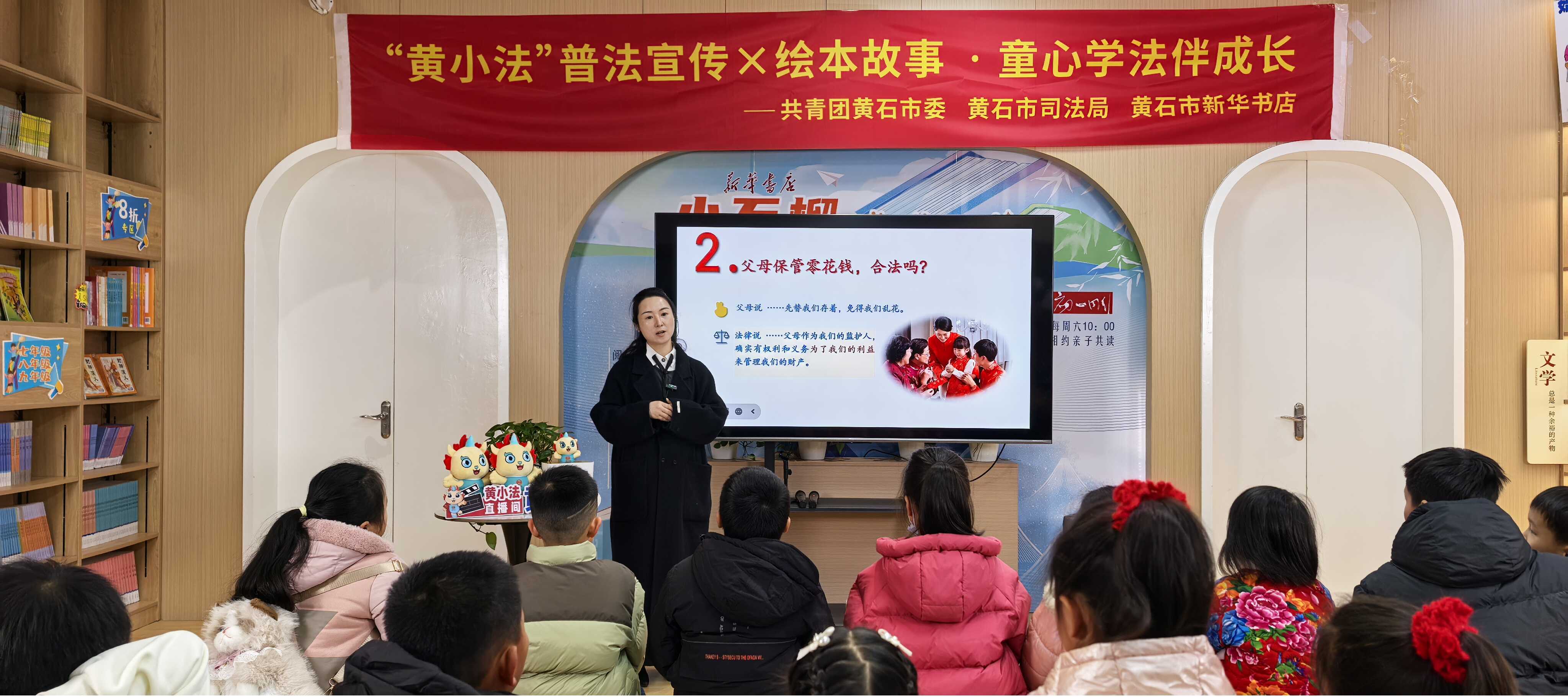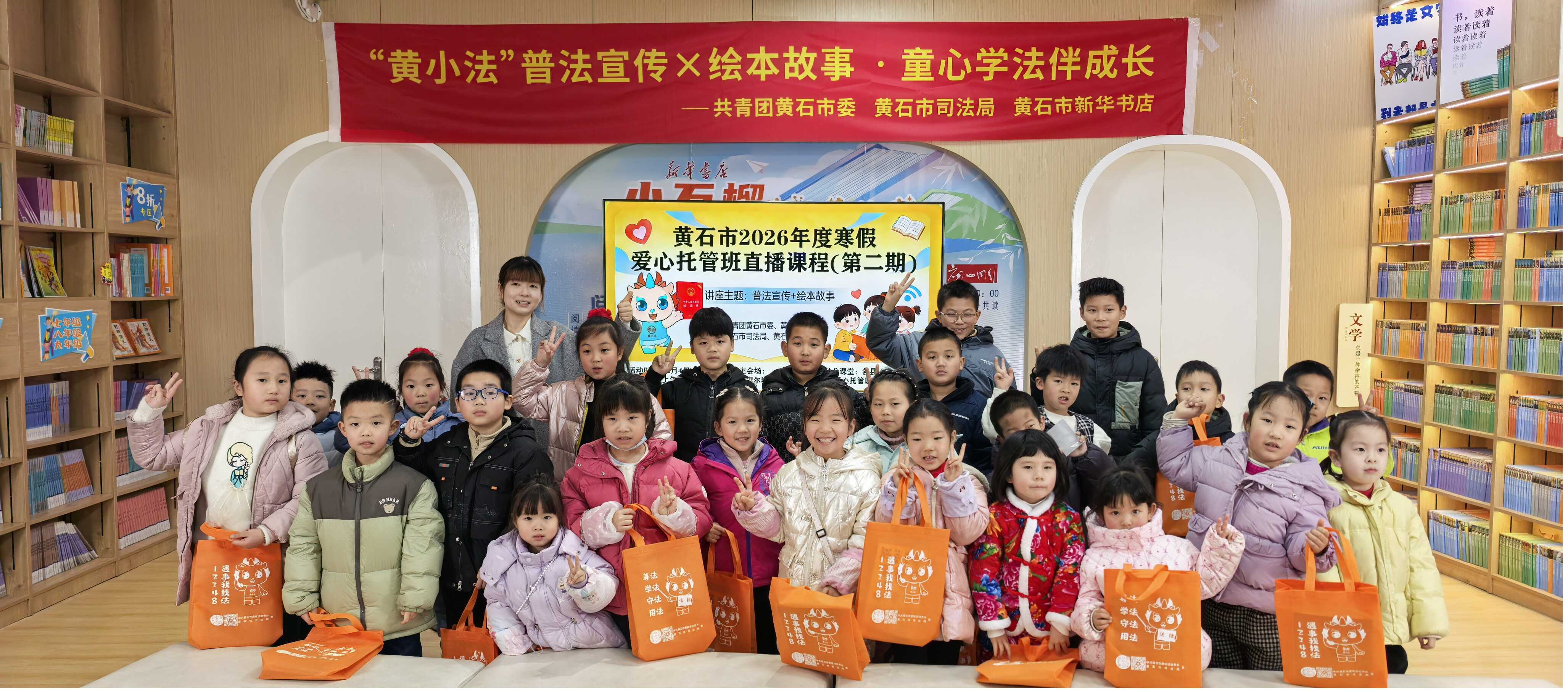 为落实春节期间平安法治宣传专项行动,让孩子们在法治护航下平安、健康度过假期,2月4日上午,市司法局联合团市委、市新华书店精心打造“寒假安全‘法’力全开黄小法护航普法之旅”专场普法直播活动。本次活动主会场设于摩尔城新华书店分店,全市121个寒假“爱心托管班”分课堂同步收看,覆盖3000余名青少年,实现优质普法资源全覆盖,让孩子们共享实用的普法大餐。